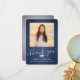 2 Photo New Address Brushed Navy Blue Graduation Thank You Card
