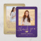 2 Photo New Address Purple Gold Script Graduation Thank You Card