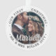 Celebrate a joyful 1st holiday as Mr. & Mrs. with a custom 2 photo "Our First Christmas Married" black and white round acrylic ornament. All text and images on this template are simple to personalise and can be different or the same on front and back. As an idea, the script typography can read "Together" or "Engaged." (IMAGE & TEXT DESIGN TIPS: 1) To adjust position of wording, add spaces at beginning or end. 2) To centre the photo exactly how you want, crop it into a square shape before uploading to the Zazzle website.) Design features a stylish black and white border, handwritten style calligraphy, the couple's names & year, and two pictures of your choice. This unique & modern wedding keepsake adds an elegant touch to Xmas home decorations. Makes a cute wedding gift idea for the bride and groom.