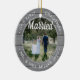 Celebrate a joyful 1st holiday as Mr. and Mrs. with a custom 2 photo "Our First Christmas Married" round faux grey wood ceramic ornament. All text and images on this template are simple to personalize and can be different or the same on front and back. (IMAGE & TEXT DESIGN TIPS: 1) To adjust position of wording, add spaces at beginning or end. 2) To center the photo exactly how you want, crop it into a square shape before uploading to the Zazzle website.) As an idea, the script typography can read "Together" or "Engaged." Design features a stylish gray and white rustic faux wood border, handwritten style calligraphy, the couple's names & year, and two pictures of your choice. This unique & modern just married keepsake adds an elegant touch to Xmas home decorations. Makes a cute wedding gift idea for the bride and groom. Example photo on front is by Tim Stagge (Source: @tim_stagge on Unsplash).