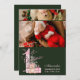 Celebrate your baby girl’s very first Christmas with this heartwarming holiday photo card! Featuring a soft watercolor teddy bear, festive pink gifts, a pastel tree, and space to highlight your newborn’s name, birth date, weight, and height — this card is the perfect keepsake for proud new parents. The rich forest green background and cosy photo layout make it both classic and charming. A must-have for sentimental moms and holiday magic lovers.