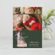 2 Photo Pink Green Baby First Christmas Holiday Card