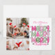 Celebrate the season in cheerful style with this vibrant photo holiday card featuring a stacked “Merry Merry Merry Christmas” design in festive pinks and greens. Playful patterns like plaid, polka dots, and stripes add a charming, modern twist. The top section includes space for two favourite family photos, while the customisable text allows you to add your family name and the year for a personal touch. A sweet way to send warm wishes and memories to friends and loved ones.