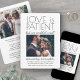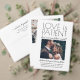 Invite family and friends to a simply elegant wedding reception with this stylish modern "love is patient but we couldn't wait" 2 photo invitation. All wording is simple to personalise for any reception only celebration, including a post elopement party, vow renewal ceremony, sequel wedding, 1st anniversary, cocktail hour or dinner party. Customise it to include the details of your choice, such as marriage date, dress code, rsvp, website, etc. (IMAGE PLACEMENT TIP: An easy way to centre a photo exactly how you want is to crop it before uploading to the Zazzle website.) The modern minimalist black and white design features two pictures of the newlywed couple, trendy handwritten script calligraphy, and chic typewriter style typography. Whether or not you eloped due to the covid pandemic or downsized to a smaller, more intimate minimony or micro wedding, the happily ever after party can still get started. Congratulations to the bride and groom!