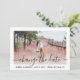 If unexpected circumstances have caused a postponement or cancellation of your special day, inform family and friends of the change plans with these elegant wedding save the new date invitations. Pictures and all text are simple to customise. (IMAGE PLACEMENT TIP: An easy way to centre a photo exactly how you want is to crop it before uploading to the Zazzle website.) Design features a white border, handwritten style script calligraphy, modern minimalist typography, and 2 pictures of your choice, one each on front and back. This engagement announcement note card is a chic and stylish way to inform wedding guests of your upcoming special day celebration and invite them to resave your new rescheduled date.