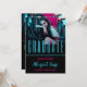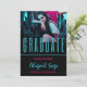 2 Photo Trendy Modern Beach Graduation Invitation with Aqua and Hot Pink Text on a Black Background