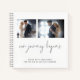 2 photos Script Our Journey Begins Wedding Guest Book. An alternative option for guests to write their wishes for the newlyweds. A romantic saying Our Journey Begins in an elegant set script, and the rest of the text you can easily personalise. Replace the sample photos with your own favourites.