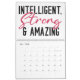 Unleash your potential with the Powerful Woman in The Making Motivation Goals Calendar! This beautifully designed calendar is more than just a way to keep track of dates; it's your daily source of inspiration and empowerment. Each month features motivational quotes and goal-setting prompts that encourage you to dream big and take actionable steps towards your aspirations. Perfect for home or office, this calendar will keep you organized while reminding you of the powerful woman you are destined to become. Embrace your journey and make every day count!