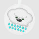 Two cartoony dog clouds (an English Sheep Dog and a brown dog) causing it to rain. Ornament is reversible (one dog on each side)!