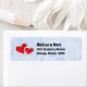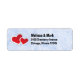 Return address labels with an illustration of 2 paper hearts - red with a white border. Set on a light blue marble background.