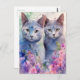 Delight in the elegance of two Russian Blue cats with this vintage-style watercolor postcard. Featuring the graceful felines surrounded by delicate flowers, this design exudes charm and sophistication. Perfect for cat lovers, art enthusiasts, or collectors, this postcard captures the beauty of these iconic cats in a serene floral setting.