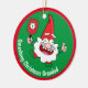 Cute Christmas pickleball ornament with Santa playing pickleball on stripy green background. custom text