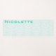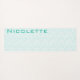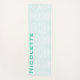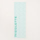 This fun design features a mint green exotic zebra stripe pattern with your name running vertically up the side. The yoga mat is reversible to a mint green small fern like pattern, with your name running up the side.