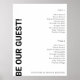 This customizable simple elegant 2 table wedding seating chart template will be a great addition to Wedding party decor. It features Be our guest bold letters written in bold black letters against white background. Text is fully editable, to make advanced changes, please select "Click to customize further" option under Personalize this template. Matching Wedding enclosure card, RSVP card and day-off stationery is also available, check out "Black and white Bold letters wedding stationery and decor" collection in my store Wowweds.