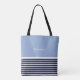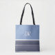 2 tone blue horizontal stripes monogram . elegant tote bag