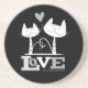 2 White Cats in Love (b&w) Sandstone Coaster