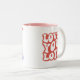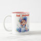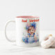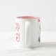 This pink 2nd birthday mug features a combination of cursive and printed text with an accompanying square graphic of what appears to be a child or doll with fluffy hair at the centre front. The shirt’s design suggests it might be intended as casual wear or as part of a special occasion 2nd birthday mud adorable for young children.