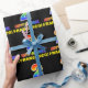 This cheerful, fun, and colourful birthday wrapping paper design features a large number "2" and the message "HAPPY BIRTHDAY,", both having a rainbow spectrum gradient inspired pattern colouring, along with a bold yellow custom recipient name. The background is coloured black. Fun birthday themed wrapping paper like this might be used to wrap a gift or present being given to somebody who is celebrating their second birthday. [~Z0000475]