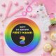 2nd Birthday: Colorful Rainbow # 2, Custom Name Paper Plate