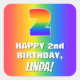 This exciting and vibrant birthday square sticker design features a large number “2” having a colourful rainbow spectrum inspired gradient pattern. It also features the message “HAPPY 2nd BIRTHDAY,”, and a custom recipient name. The background also features a joyful multicolored rainbow spectrum inspired gradient pattern. Fun, cheerful, personalised stickers like this might be given as a birthday gift, or used while wrapping gifts/presents, or perhaps used as a birthday party decoration when celebrating somebody’s second birthday. [~Z0000571]