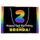 This bold and upbeat birthday gift bag design features the number “2“ with a vibrant rainbow spectrum inspired gradient pattern, along with the message “Happy 2nd Birthday,”, and a personalised recipient name. Birthday themed giftbags like this might be used when giving gifts or presents in celebration of somebody’s 2nd birthday. [~Z0000632]
