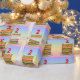 This fun and cheerful birthday wrapping paper design features a cartoon-style depiction of a three-tier birthday cake having a number-shaped candle on top showing the age “2“, along with the message “HAPPY 2ND BIRTHDAY,”, and a customisable recipient name. The background has a multi-colour pastel rainbow spectrum inspired gradient pattern. Colourful birthday themed wrapping paper like this might be a fun way to wrap a gift or present being given to somebody who is celebrating their second birthday. [~Z0000622]