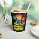 This fun and cheerful birthday themed paper cup design features a large number “2” with a rainbow spectrum gradient inspired pattern, along with the message “Happy 2nd Birthday,”, and a customisable name. The background features a vibrant and colourful bursting celebratory fireworks inspired pattern. Vibrant, colourful paper cups like this might be fun to have at a birthday party/celebration being held in celebration of somebody’s 2nd birthday. [~Z0000539]