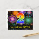 2nd Birthday – Fun Fireworks Pattern + Rainbow 2 Postcard