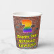 This vibrant and exciting urban street art and graffiti inspired birthday paper cup design features a large number “2” having a colourful rainbow spectrum gradient inspired pattern. It also features the message “Happy 2nd Birthday,”, and an editable name. The background has a brick wall pattern. Colourful, vibrant paper cups like this might be fun to use at a birthday celebration being held to honour somebody’s second birthday. [~Z0000543]