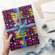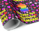 This fun and cheerful birthday-themed wrapping paper design features a large number “2” with a rainbow spectrum gradient inspired pattern, along with the message “Happy 2nd Birthday,”, and a personalised name. The background features a pattern of pink, purple, and red heart shapes. Birthday themed wrapping paper like this might be a fun way to wrap a gift or present being given to somebody who is celebrating their second birthday. [~Z0000549]
