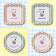 This cheeky monkey has a bright pink balloon to celebrate a toddler's second birthday. Editable text - add a name and a birthday greeting for example. Around the edge of the plate there is a pattern of more smiling monkeys on a cream background.