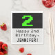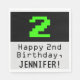 This nerdy and fun birthday paper napkin design features a large green vintage computer game style number "2" on a black coloured background. It also features the birthday greeting message "Happy 2nd Birthday,", and a custom name. Birthday themed paper napkins like this might be fun to use at a celebration being held to honour somebody who is celebrating their second birthday. [~Z0000404]