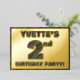 The front of this bold second birthday celebration/party foil invitation card features a custom name, a large number “2nd”, the message “BIRTHDAY PARTY!”, and a border, all featuring a rustic, yet sophisticated, faux wood grain appearance inspired pattern. The back features personalised details about the event, such as the date, time, location/venue, and any other useful information. Editable invitations like these might be used to invite attendees to a birthday gathering/party being held to honour somebody’s 2nd birthday. [~Z0000595]