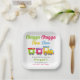 Invite everyone to hop on board with this colourful cartoon steam train paper plate for a 2nd birthday party! The playful font reads “Chugga Chugga Choo Choo” in matching train colours at the top, while “All Aboard the Fun Express for Name’s Second Birthday Party” adds a cheerful touch below the graphic. Easily customise party details to create a keepsake that’s as special as your little one. Order today to make their day truly unforgettable!