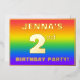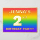 The front of this upbeat second birthday celebration/party foil invitation card design features a customisable name, a large number “2nd”, the message “BIRTHDAY PARTY!”, and a border. The background of the front features an exciting, multicolored, rainbow spectrum inspired gradient pattern. The back features personalised details about the event, such as the date, time, location, and any other information that may be useful. Personalised invitations like these might be a fun way to invite attendees to a birthday party/gathering being held to honour somebody’s 2nd birthday. [~Z0000599]