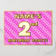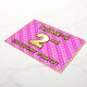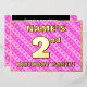 The front of this upbeat second birthday celebration/party foil invitation card design features a customisable name, a large number “2nd”, the message “BIRTHDAY PARTY!”, and a border. The background of the front features a loving pattern with light pink and dark pink stripes and heart shapes. The back features personalised details about the event, such as the date, time, venue, and any other information that may be important. Personalised invitations like these might be a fun way to invite attendees/guests to a birthday gathering/party being held in celebration of somebody’s 2nd birthday. [~Z0000603]