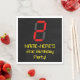This geeky and nerdy birthday-themed paper napkin design features a large number "2" with a red seven segment digital display inspired look, along with a custom name and the message "2nd Birthday Party!" in geeky yellow text, on a black coloured background. Birthday themed paper napkins like this might be used when celebrating somebody’s 2nd birthday. [~Z0000388]