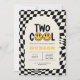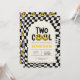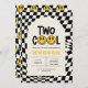 2nd birthday smile face retro black, white and yellow groovy lightening bolt cool birthday invitation.