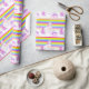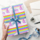 Unicorn watercolor rainbow stripe patterned 2nd birthday wrapping paper. Personalize with your own name, currently reads Happy Birthday Stella Two. Cute whimsical chantering unicorn painting and design by Sarah Trett www.sarahtrett.com for www.mylittleeden.com on zazzle.