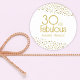 30 and Fabulous Gold Glitter 30th Birthday Round Sticker. Modern and elegant birthday sticker with trendy typography and faux gold glitter spots. The design has a custom name. Make personalised 30th birthday sticker for her.