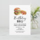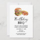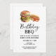 Birthday BBQ Invitations. Easy to personalise. All text is adjustable and easy to change for your own party needs. Simple Watercolor hamburger and hotdog graphics. Invitations for him. Bar or backyard BBQ birthday design. Any age, just change the text.