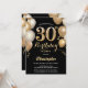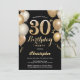30th Birthday Black and Gold Balloons Confetti Invitation