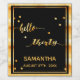 Elegant and modern for a 30th birthday party. Black backdrop and faux gold text written with a trendy hand-lettered style script: hello thirty. With golden dots as decor. Templates for name and date, golden letters. You can change the background colour to match your theme. Click customise and then "select a background colour" on your right.
