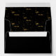 Outside: black background colour. Back: template for a name and address. Inside: Black background and faux gold text written with a trendy hand-lettered style script: hello thirty. With golden dots as decor. A simple and trendy envelope for your 30th birthday party invitations, save the dates or thank you cards,