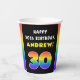 30th Birthday: Colourful Rainbow # 30, Custom Name Paper Cups