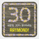 30th Birthday: Floral Number, Faux Wood Look, Name Square Sticker