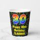 30th Birthday: Fun Music Notes Pattern, Rainbow 30 Paper Cups