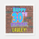 This fun birthday-themed paper napkin design features the message “HAPPY 30TH BIRTHDAY,” having a vibrant, colourful, urban street art and graffiti inspired look, in addition to a custom recipient name. The background features a pattern inspired by the look of a brick wall. Birthday themed paper napkins like this might be a fun way to celebrate somebody’s thirtieth birthday. [~Z0000534]