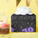Make a 30th birthday extra special by wrapping all your gifts in 30th birthday gift wrap wrapping paper. This paper features the number 30 in purple in bold print on top of lots of confetti on a black background. A great gift wrap for a 30th birthday celebration. Copyright Kathy Henis