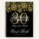 An elegant and sophisticated winter 30th Birthday Guest Book template with Gold Faux Glitter Snowflakes & bokeh glowing lights on black background (you can change the background colour to suit your needs), and custom name + date text.